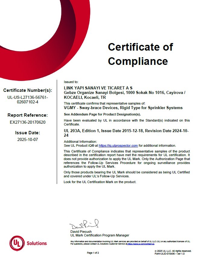 Rijit Sismik (RSBA, RSBE, RSBI) Boru Askı Elemanları (SP, DB, SBH, LBC)