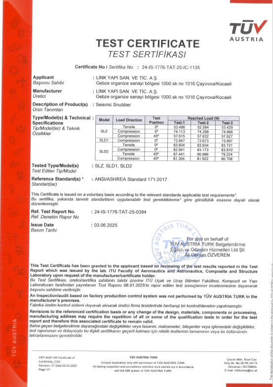 Sismik Sınırlandırıcılar (SLZ, SLD1, SLD2) Sismik İzolatörler Rotlu Sismik Sınırlandırıcılar (RSM)